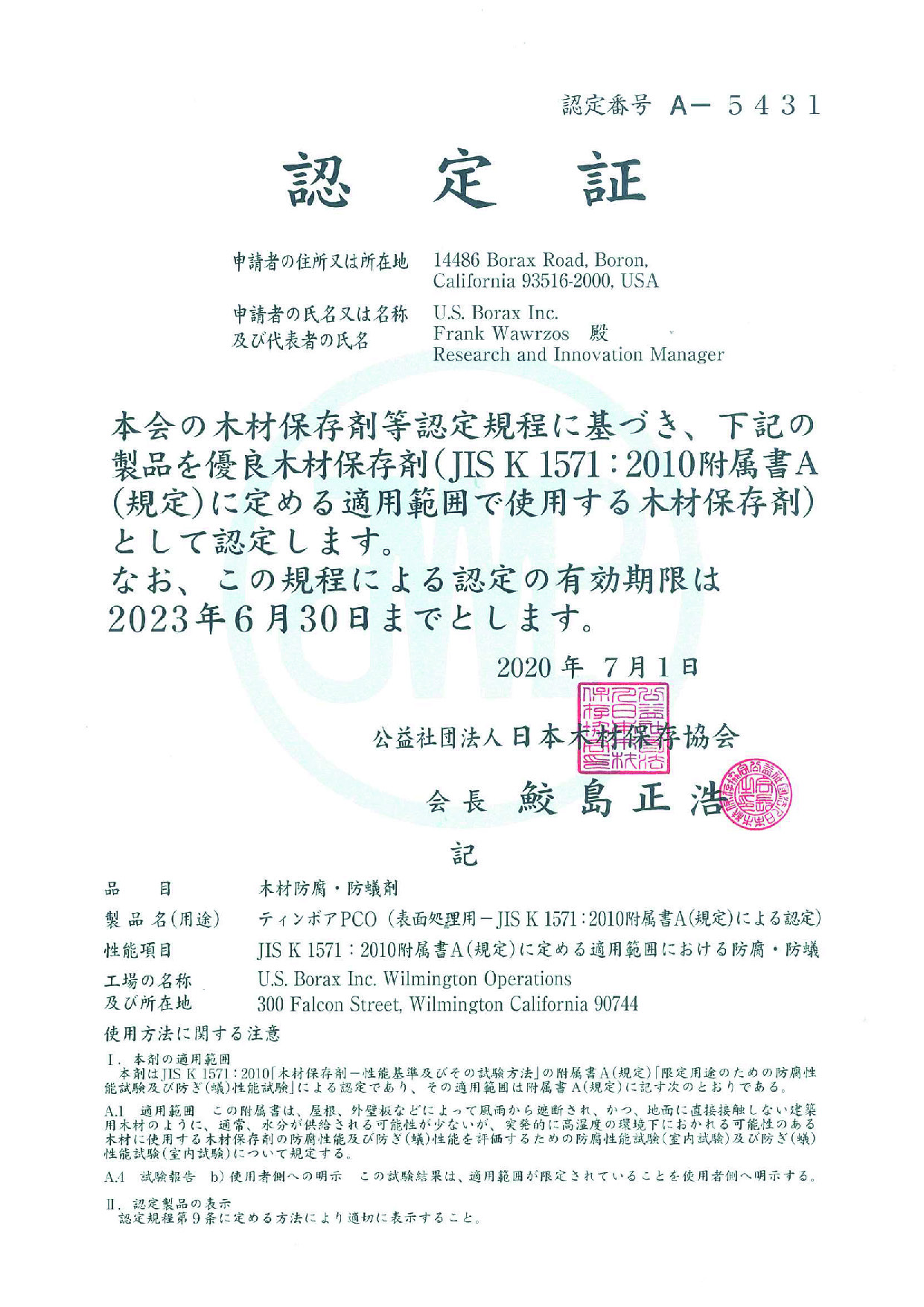 オクトボーは公益社団法人日本木材保存協会に認定されている木材防腐・防蟻剤です。